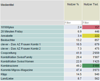 Kleiner 10%: Die niedrigsten 10% der Werte werden rot eingefärbt